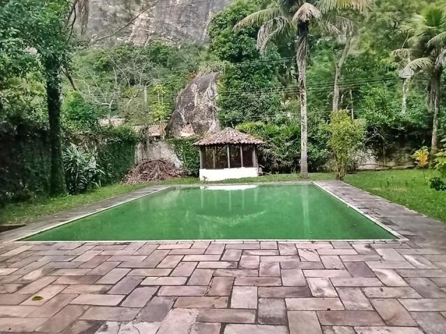 Área de lazer com piscina em alvenaria, churrasqueira com um banheiro externo, galinheiro, várias árvores frutíferas, vista deslumbrante para a montanha.